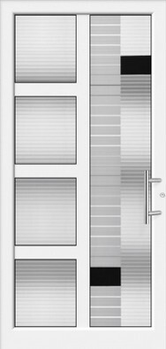 Glas und Füllungen, hier als Gestaltungselemente gekonnt kombiniert, vermitteln einen ersten Eindruck der Möglichkeiten, die Ihnen das Haustürprogramm bietet. Alle Glastüren der Serie Modelltüren können nach persönlichen Geschmack zusammengestellt werden. Türen der Serie Modell werden vorwiegend im Objektbau eingesetzt.